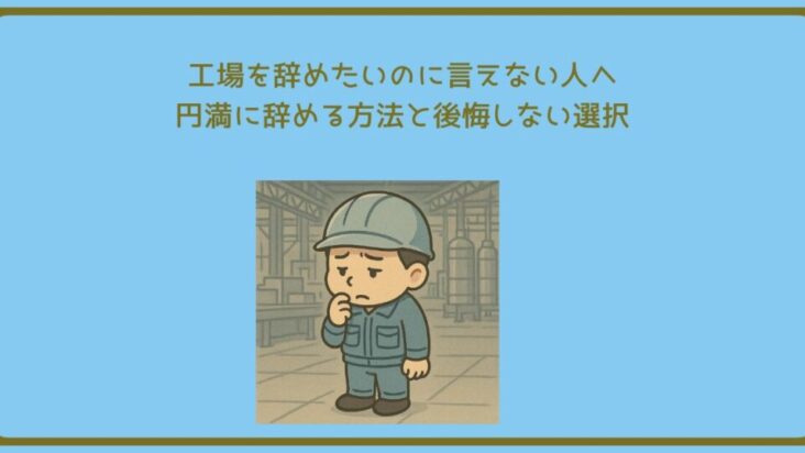 不安な人向け工場を辞めたいのに言えない人へ|円満に辞める方法と後悔しない選択 工場を辞めたいのに言えないと悩んでいませんか?本記事では、円満に辞める伝え方や言い出せないときの対処法を現役工場勤務者の体験をもとに解説。無理を続けるリスクや後悔しない選択についてもわかりやすく紹介します。 2026.04.12不安な人向け身体がつらい人向け