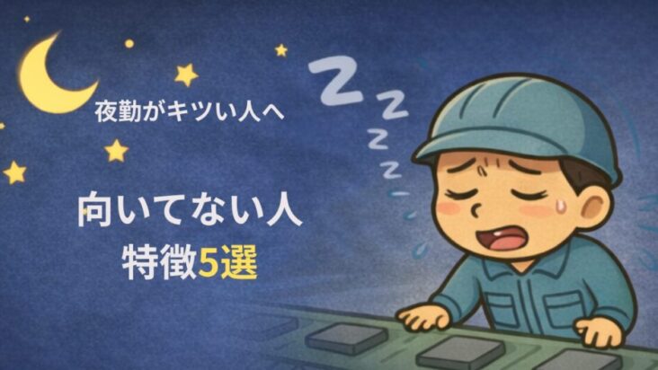 夜勤がきつい…それ、向いていないサインかもしれません。本記事では、夜勤に向いていない人の特徴5つと無理した場合のリスク、対処法まで現役工員が解説。「続けるべきか悩んでいる人」に役立つ判断基準が分かります。